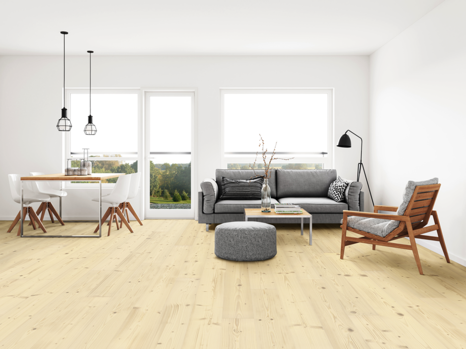Mit Eurowood Naturböden aus Nadelholz schaffen Sie ein lebendiges und sehr wohnliches Ambiente. Die Holzzeichnung mit dem characteristischen Astbild vermittelt moderne Bodenständigkeit und Behaglichkeit. Wählen Sie ein Bodenbild nach ihren Vorstellungen aus drei verschiedenen Nadelholzarten.