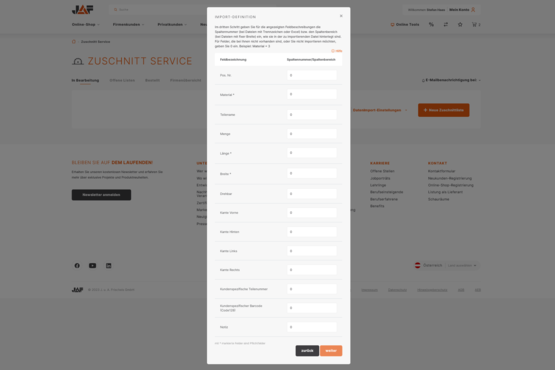 Im letzten Schritt geben Sie für die angezeigten Feldbeschreibungen die Spaltennummer bzw. den Spaltenbereich ein, wie sie in der zu importierenden Datei hinterlegt sind.