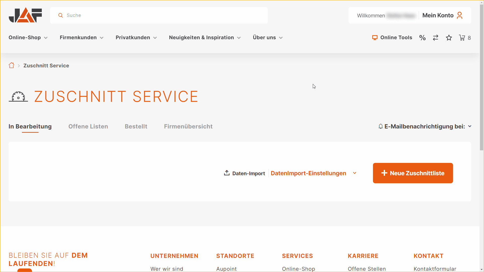 - Material*, Länge*, Breite*, Pos.Nr., Teilname, Menge*, Drehbar, Kante Vorne, Kante Hinten, Kante Link, Kante Rechts, Kundenspezifische Teilnummer, Kundenspezifischer Barcode (Code128, 15 Zeichen Maximum) , Notiz