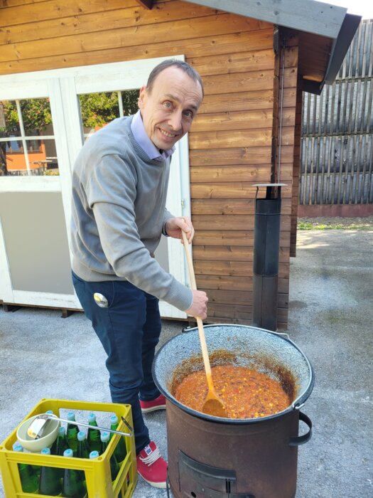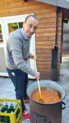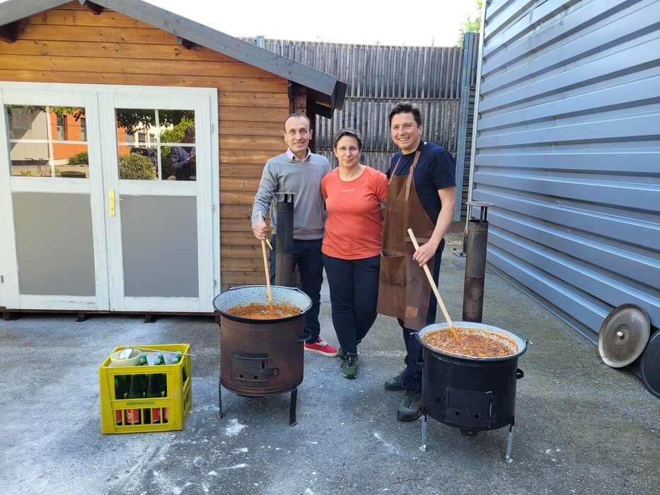 Vor Ort kochte er gemeinsam mit unserer Kollegin Brigitte Wöber und unserem Kollegen Josef Dungl Chili con Carne und Chili sin Carne. Auch für Getränke war gesorgt. Bei strahlendem Sonnenschein genossen die Kolleginnen und Kollegen das hervorragende Essen und das nette Zusammensein.
