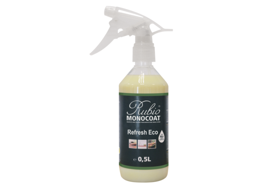 Ist der Boden bereits seit Jahren im Gebrauch und von der Nutzung gezeichnet, so kann die gesamte Fläche abgeschliffen und mit einem passenden Öl neu eingelassen werden. Auch die partielle Auffrischung der Oberfläche ist durch handliche Sprühflaschen möglich (Refresh Eco).