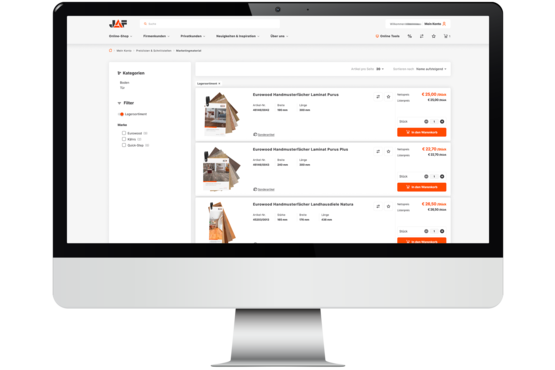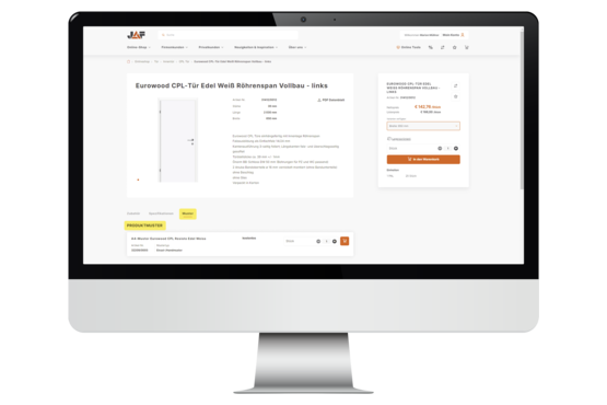 Produktmuster erleichtern die Auswahl und die Beratung bei der Suche nach dem richtigen Produkt um ein Vielfaches. Profitieren Sie als eingeloggter JAF-Kunde von den vielen praktischen Funktionen des Online-Shops und gelangen Sie einfach und bequem zu Ihrem Bodenmuster oder Türenmuster. Nutzen Sie als Verkaufsunterstützung außerdem die Musterfächer von JAF.
