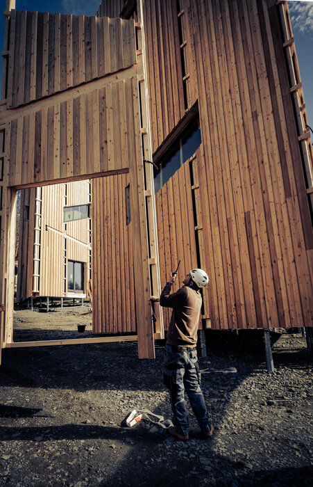 Beim Projekt Sternenhimmelchalets konnte sich LibertydotHome auf die Beratung des JAF-Experten Andreas Lexmüller verlassen. Dabei liegt die Stärke des BSP-Bereichs bei JAF nicht nur in der Beschaffung des passenden Materials und in der lückenlosen Logistik: Bei Bedarf unterstützt das Team Gewerbekunden auch technisch – sowohl bei der 3D-Planung und Elementierung als auch bei der statischen Vorbemessung und Optimierung der Querschnitte. Auch der Vorfertigungsgrad wird gemeinsam mit dem Kunden definiert, bevor das Brettsperrholz seinen termingerechten Weg auf die Baustelle findet.