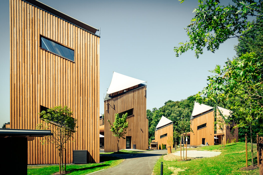 Wer das IKUNA-Ferienresort im oberösterreichischen Natternbach betritt, erlebt ein unvergessliches Naturerlebnis auf 200.000 m². Das Holzbauunternehmen LibertydotHome hat sich der Aufgabe gestellt, ausdrucksstarke Bauten zu schaffen, die die Besonderheit und Naturverbundenheit des Ortes einfangen. In Zusammenarbeit mit JAF wurden zehn 15 m hohe Sternenhimmelchalets errichtet, die auf Erdschraubfundamenten stehen und eine nachhaltige Bauweise repräsentieren. Ein Glasdach ermöglicht romantische Übernachtungen unter dem Sternenhimmel.
