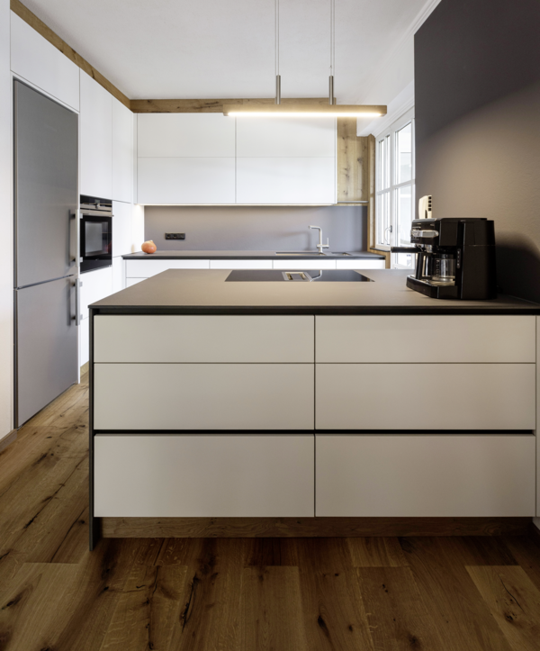 Matte Fronten liegen im Trend, wirken ideal mit dunklen Farben und sind zurückhaltend unaufdringlich. Viele matte Dekore sind mit einer Anti-Fingerprint-Eigenschaft ausgestattet und dadurch besonders unempfindlich und pflegeleicht, denn sie lassen sich mit den passenden Produkten leicht reinigen.
