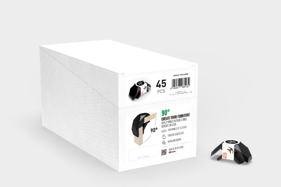 Bei JAF können Sie die Boxen bestellen und die Verbinder einzeln direkt an den Endkunden verkaufen. Zur Auswahl stehen dabei 90°-Verbinder mit 45 Stück pro Box, X-Verbinder mit 30 Stück pro Box und T-Verbinder mit 40 Stück pro Box. Playwood steht bei JAF in den Farben Schwarz, Rot, Weiß und Grau zur Verfügung.