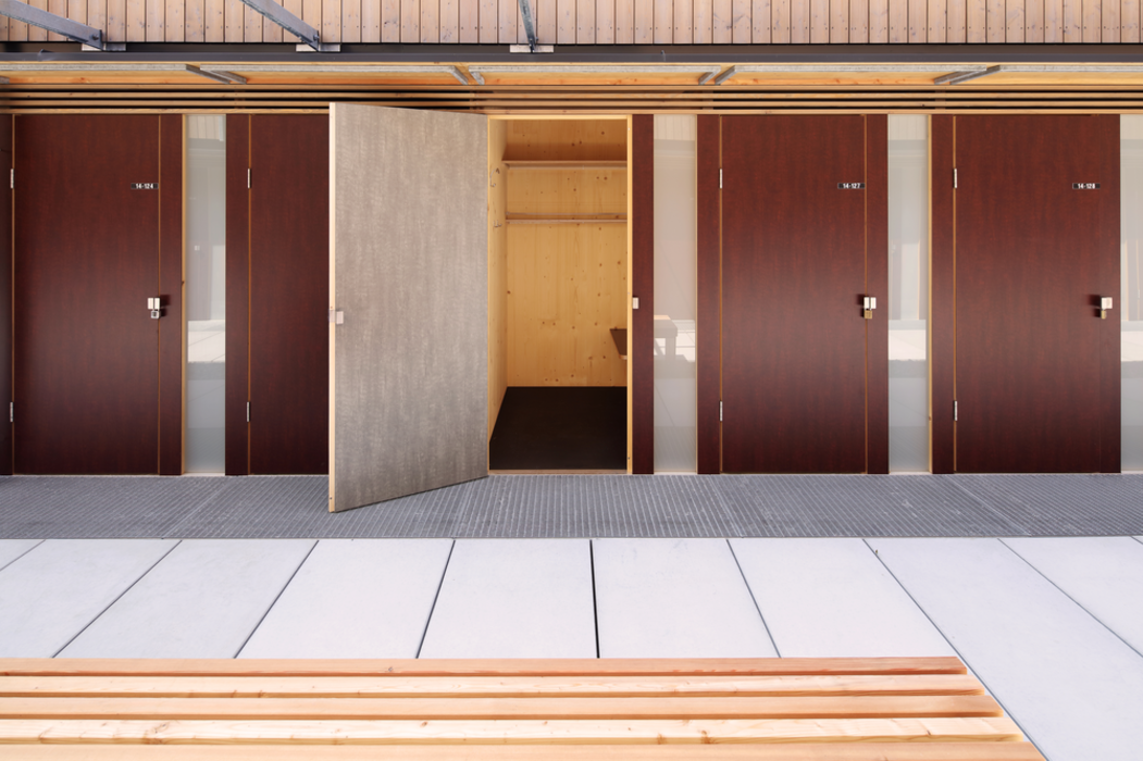 Seit über 100 Jahren lädt das Klagenfurter Strandbad am Wörthersee zum Bad im azurblauen Nass. Für eine gelungene Erweiterung kam ein weites Spektrum an Holzprodukten von JAF zum Einsatz. Denn in einem neuen Trakt entstanden 455 Kabinen und 524 Kästchen, die durch die Verwendung von Siebdruckplatten aus edlem Sperrholz besonders viel Charme versprühen. JAF Villach lieferte, neben dem Sperrholz, auch das Holz für die Rahmenkonstruktion der Türen. Zudem wurde sowohl die Innen- als auch Außenseite mit Interior- bzw. Exterior-Platten von JAF verkleidet.