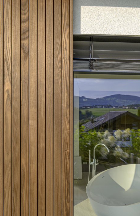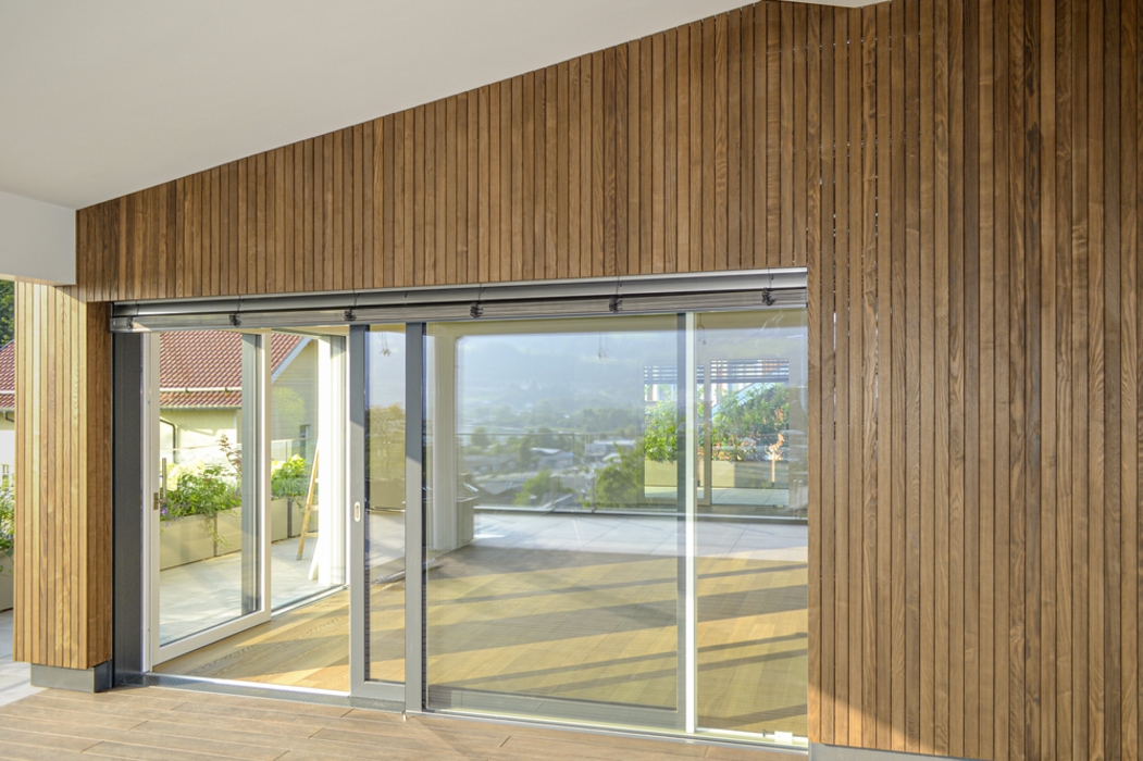 Wenn Wohnen mehr als nur Zweck ist, wird die Wahl der eingesetzten Materialien zur Philosophie. Fassadenelemente aus Thermo-Esche stehen nicht nur für Nachhaltigkeits-Bewusstsein, sondern sind auch eindrucksvolle Designsprache. In einer Penthouse-Wohnung kam zudem das innovative Montagesystem clipJuAn zum Einsatz.