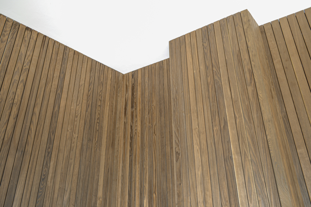 Die Elemente bestechen nicht nur durch ihre Natürlichkeit, dank der Thermo-Behandlung überzeugen sie auch durch ihre Langlebigkeit. Das Holz wird dabei in einer Thermokammer behandelt, wodurch es geringer als zuvor auf Umgebungsfeuchte reagiert. Damit ist es ideal geeignet für den Einsatz im Außenbereich. Und nicht nur die hochwertigen Produkteigenschaften überzeugen. Denn bei der Montage der Fassadenelemente wurde mit dem System clipJuAn® auf eine äußerst effiziente Lösung zurückgegriffen. Die Dielen sind vorprofiliert und können dank des Klick-Systems einfach montiert werden. Das spart Zeit und sorgt auch für eine überzeugende Optik, denn das Verlegesystem garantiert genaue Fugenabstände.
