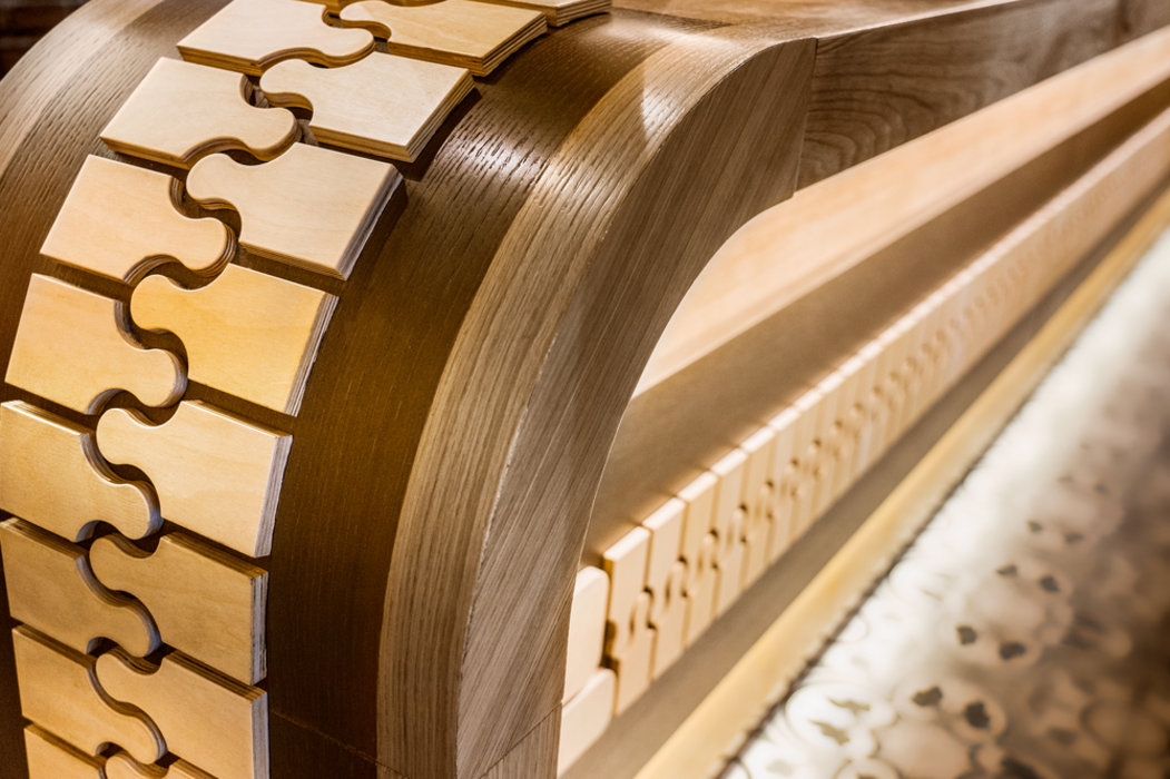 Beeindruckendes Interior Design begrüßt die Gäste der Zero Bar. Dass überdimensionale Reißverschlüsse aus Birkensperrholz die Wand und Decke zieren, ist dabei nur noch das Tüpfelchen auf dem i.