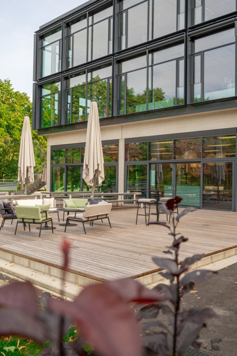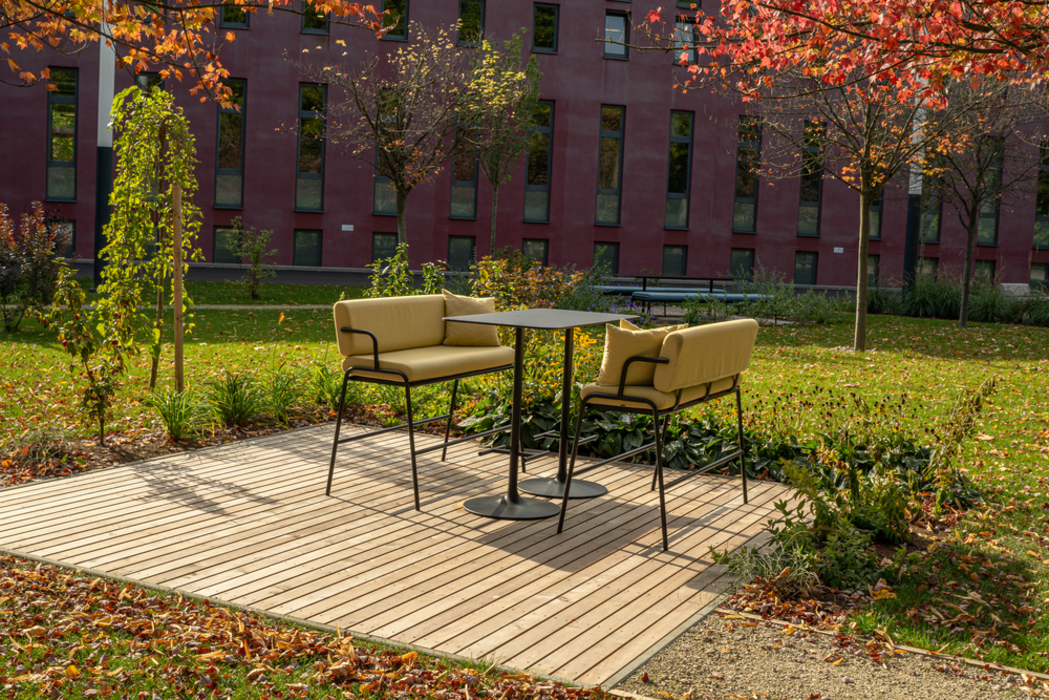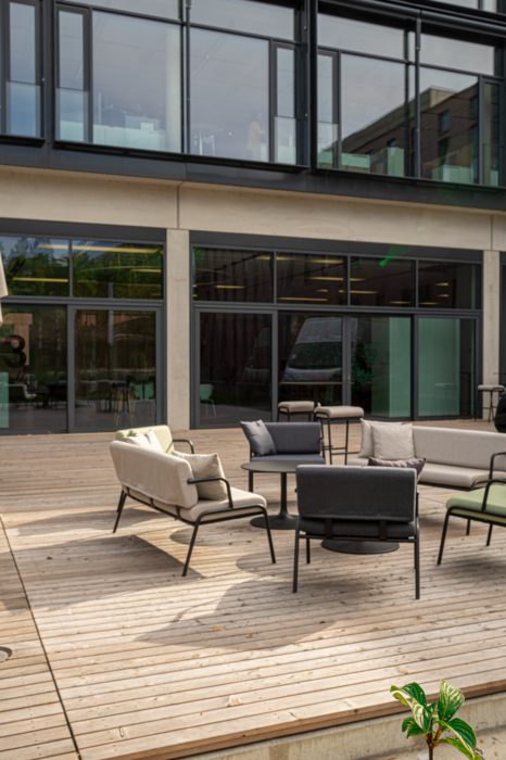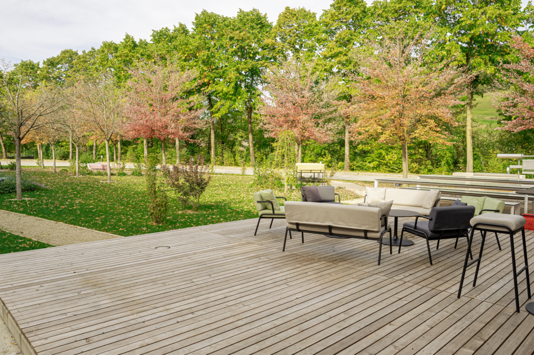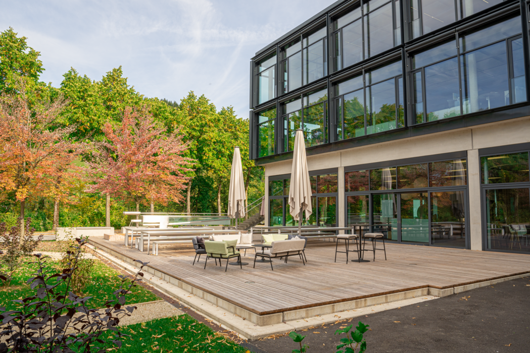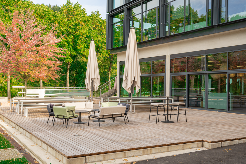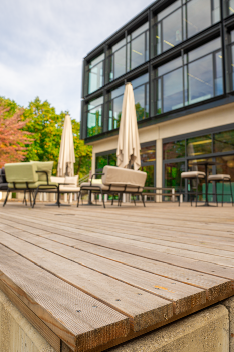 Mit einer neuen Terrasse für die eigenen Mitarbeiterinnen und Mitarbeiter schafft der internationale Büromöbelexperte Bene einen Wohlfühlort für kurze Auszeiten. Die passenden Dielen aus heimischer Lärche lieferte JAF Stockerau.