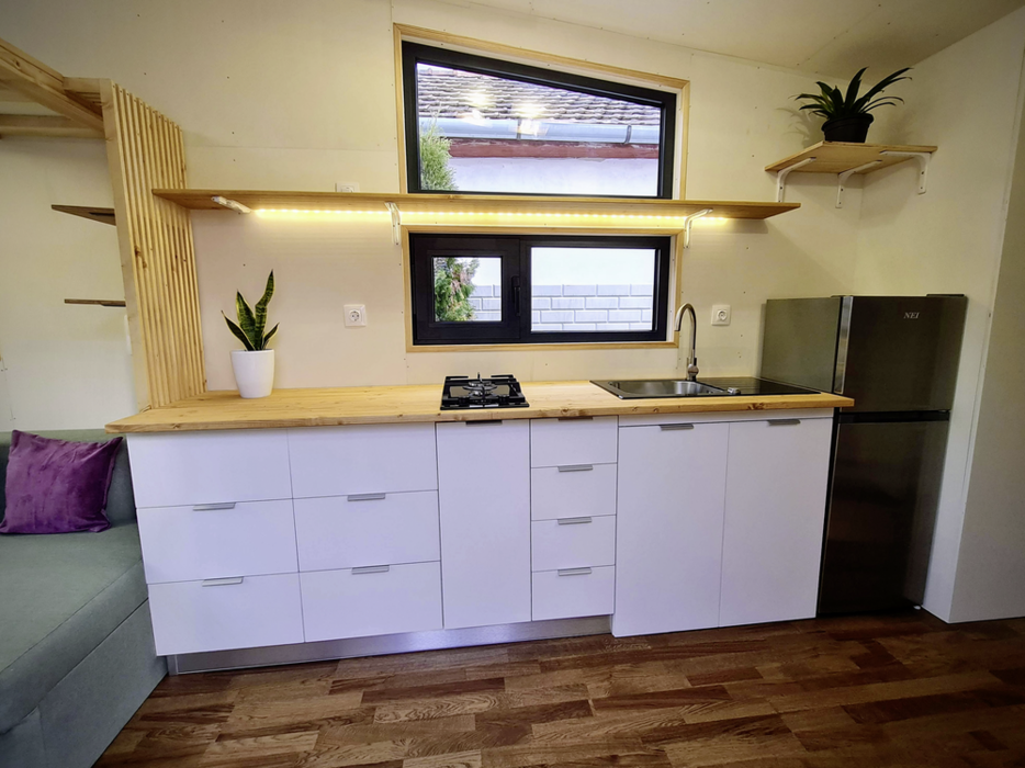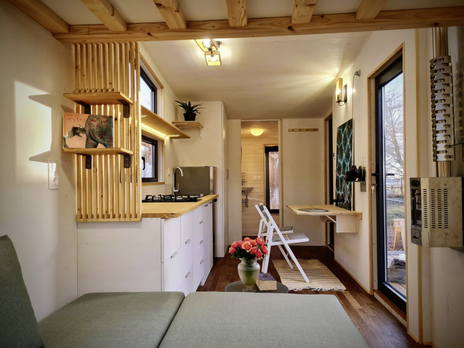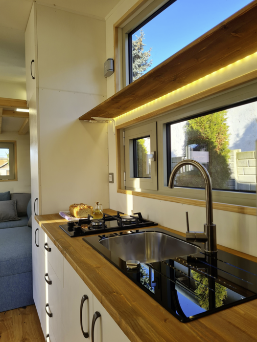 Tiny Houses sind kleine Wohneinheiten, oftmals nicht größer als ein Container, die wenig Platz benötigen und – dank mobiler Möglichkeiten – auch einfach ihren Standort wechseln können. Für die Einrichtung solcher kleinen, mobilen Wohneinheiten bedarf es besonders kreativer Konzepte, die den geringen Platz so effizient wie möglich zu nutzen wissen. Auch an das eingesetzte Material werden hohe Ansprüche gestellt. Dank seiner umfangreichen Beratungskompetenz und der Produktvielfalt war Holver für das vorliegende Tiny House Projekt der passende Abwicklungspartner, wie die gelieferten Produkte eindrucksvoll zeigen.