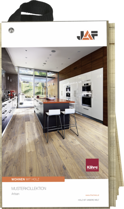 Dieser Musterfächer enthält das JAF-Lagerprogramm der Kährs Artisan Kollektion.