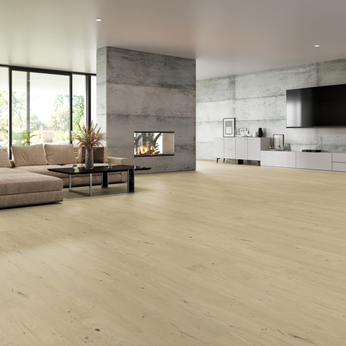 Uno ist ein lebendiger, ausdrucksstarker Boden aus Eichen-, Ahorn- oder Nussholz. Auf dem kompakten Dielenformat im Einstab-Design kommen die natürlichen Maserungen und Astbilder besonders schön heraus.