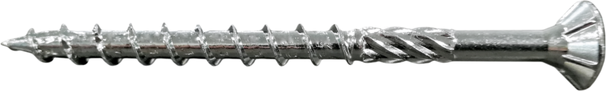 Die Spanplattenschrauben verfügen über einen Schaftfräser, Fräsrippen und eine Spitze, die das Eindringen in den Untergrund einfacher und schneller macht. Der TX-Antrieb sorgt für ein wesentlich besseres Drehmoment, verglichen mit PZ- oder PH-Antrieb, ohne einen höheren Anpressdruck beim Schrauben ausüben zu müssen.