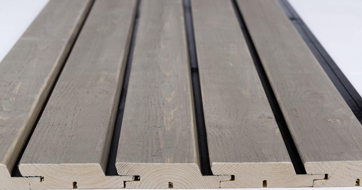 Fassadenprofil nordische Fichte VEH AB Rhombo Solo, Feder schwarz, vorvergraut, Feinbandsägeschnitt