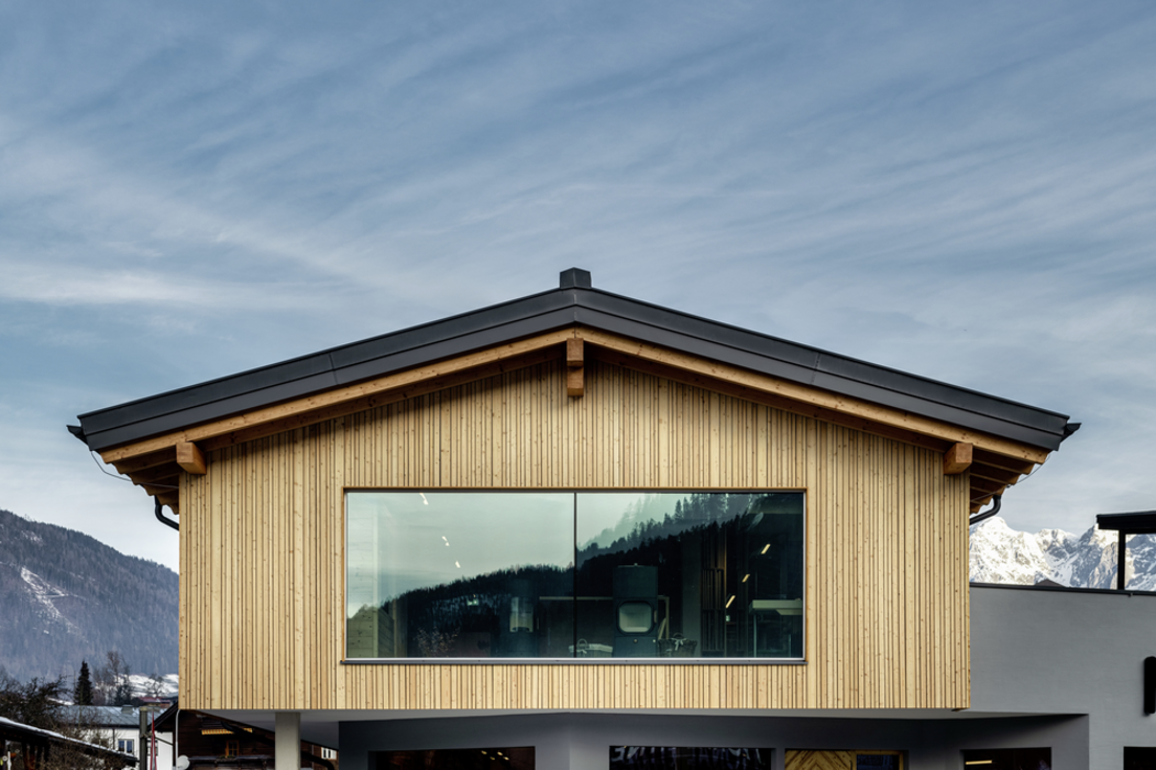 Das Fassadenprofil Vertikal mit schwarzer Feder und Microriffelung punktet optisch