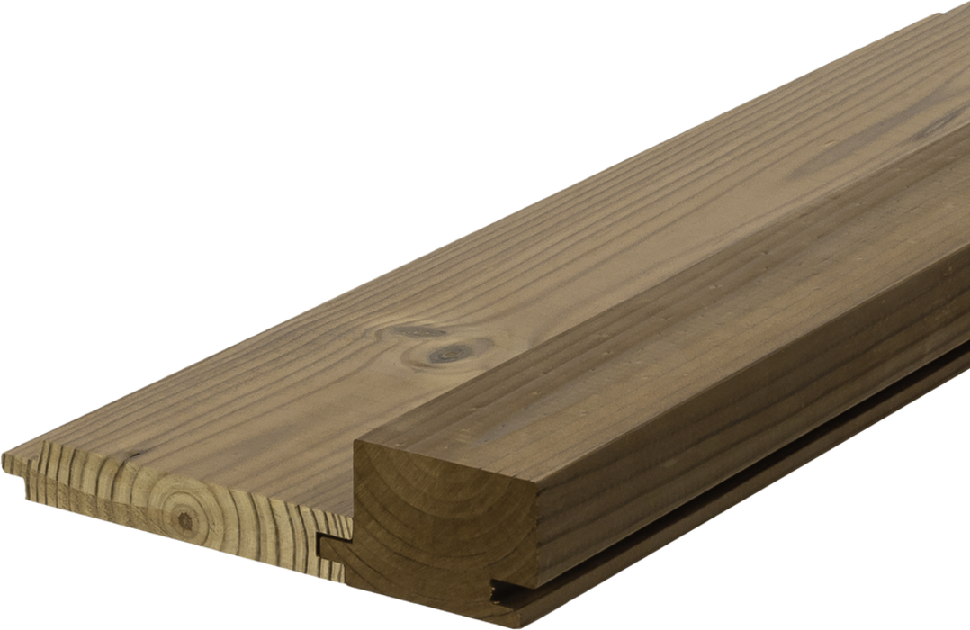 Thermokiefer bewahrt sich die lebendige, kontrastierende Zeichnung des Kiefer-Rohholzes mit seinem typischen Astbild. Wie Flügel unterbrechen ovale Äste in perfekter Unregelmäßigkeit die Formen der Jahreslinien. Die Kiefer wächst bis zu 30 Meter in die Höhe, je nördlicher das Wuchsgebiet, desto feiner ist das Holz gezeichnet. Dank Thermo-Veredelung nimmt die Kiefer einen warmen Farbton wie Karamell an.