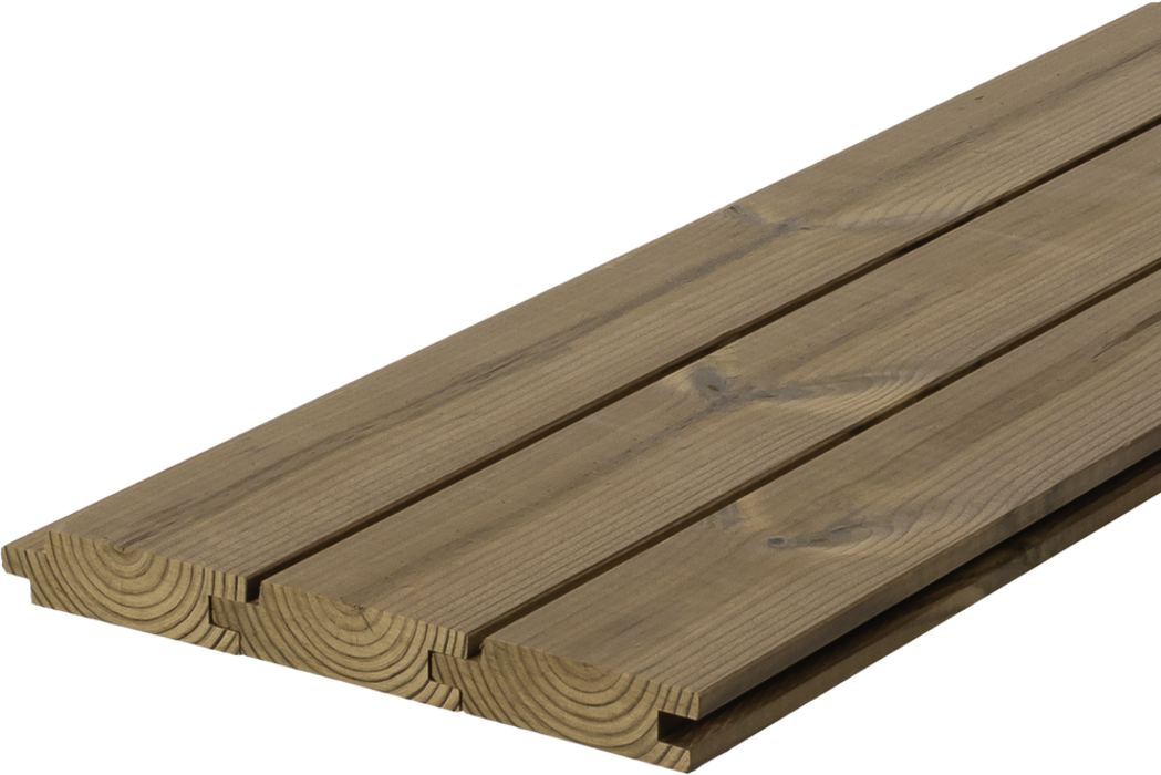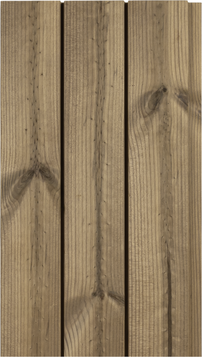 Thermokiefer bewahrt sich die lebendige, kontrastierende Zeichnung des Kiefer-Rohholzes mit seinem typischen Astbild. Wie Flügel unterbrechen ovale Äste in perfekter Unregelmäßigkeit die Formen der Jahreslinien. Die Kiefer wächst bis zu 30 Meter in die Höhe, je nördlicher das Wuchsgebiet, desto feiner ist das Holz gezeichnet. Dank Thermo-Veredelung nimmt die Kiefer einen warmen Farbton wie Karamell an.