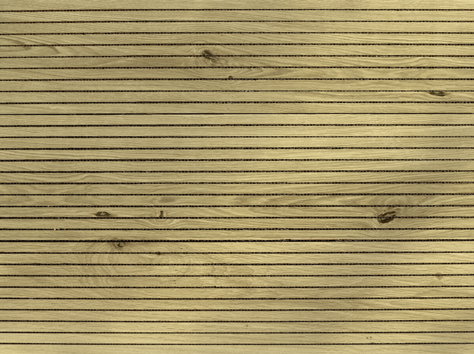 Massivholz Decklage (Schnittgeometrie: 15 mm Steg - 3 mm Schlitz) 30 mm Sinuswabe, Rückseitig aufkaschiertes Akustikvlies. Verdeckte, werkzeuglose Montage mittels ACOUSTICs Befestigungssystem oder Direktbefestigung mit Klammern oder gestauchten Nägeln durch die MDF-Feder. Details siehe Montageanleitung.