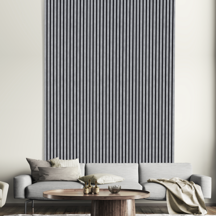 Die Akustikdesginpaneele bringen gute Akustik und Design in jeden Raum. Die schwarze Trägerplatte aus PET-Fasern in Kombination mit den folierten bzw. furnierten MDF Lamellen machen das Paneel zum echten Eyecatcher.
