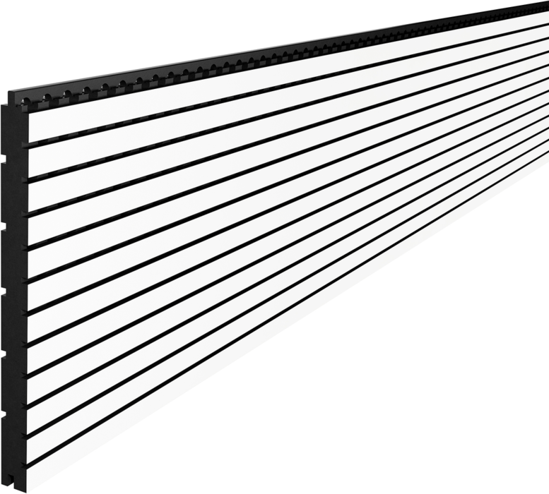 Sowohl in der horizontalen als auch in der vertikalen Verlegesituation macht die slimline eine extrem gute Figur. Darüber hinaus punktet das Akustikpaneel aufgrund der optimalen Gegenbohrungen mit sehr guten Absorptionswerten. Lineare Schlitzung und konsequentes Design: Je nach Einbausituation und Oberflächengestaltung wirkt die Schlitzung markant oder dezent.