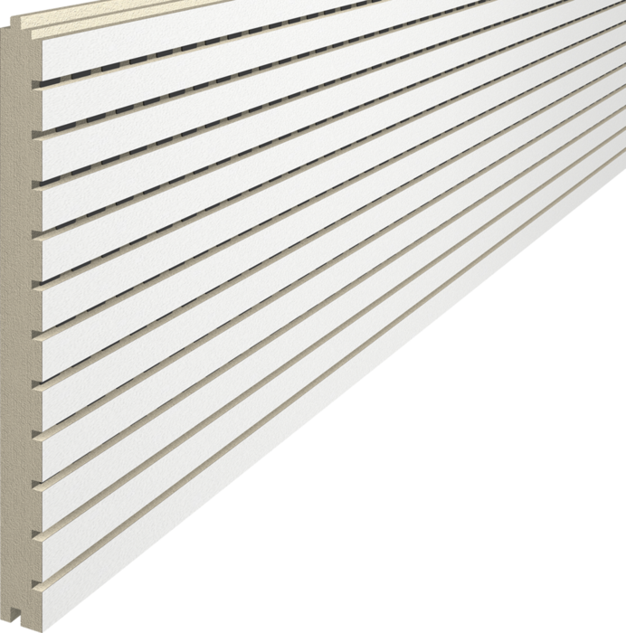Sowohl in der horizontalen als auch in der vertikalen Verlegesituation macht die slimline eine extrem gute Figur. Darüber hinaus punktet das Akustikpaneel aufgrund der optimalen Gegenbohrungen mit sehr guten Absorptionswerten. Lineare Schlitzung und konsequentes Design: Je nach Einbausituation und Oberflächengestaltung wirkt die Schlitzung markant oder dezent.