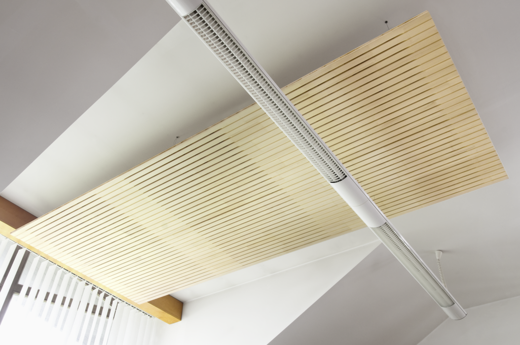 Die Paneele „Novatop Acoustic“ sind Holz pur und entsprechen damit dem aktuellen Trend zum natürlichen Wohnen. „Novatop Acoustic“ sind 3-Schicht Naturholzplatten der Holzsorten Fichte mit perforierter Schlitzoptik. Die Oberfläche der Holzplatten hat Sichtqualität (B) und ist geschliffen roh. Die Platten zeichnen sich vor allem durch das geringe Eigengewicht aus und sind wie herkömmliche Deckenverkleidungen auf einer Unterkonstruktion zu montieren.