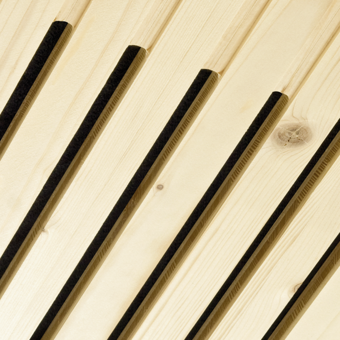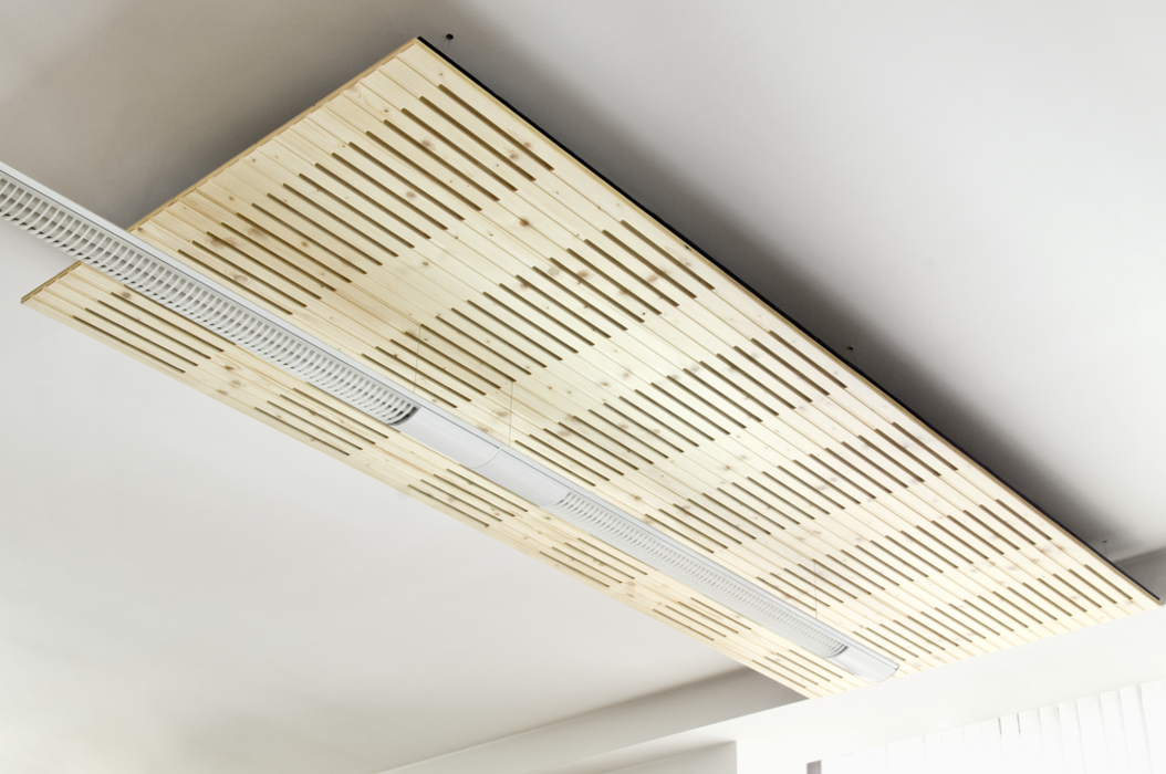 Die Paneele „Novatop Acoustic“ sind Holz pur und entsprechen damit dem aktuellen Trend zum natürlichen Wohnen. „Novatop Acoustic“ sind 3-Schicht Naturholzplatten der Holzsorten Fichte mit perforierter Schlitzoptik. Die Oberfläche der Holzplatten hat Sichtqualität (B) und ist geschliffen roh. Die Platten zeichnen sich vor allem durch das geringe Eigengewicht aus und sind wie herkömmliche Deckenverkleidungen auf einer Unterkonstruktion zu montieren.