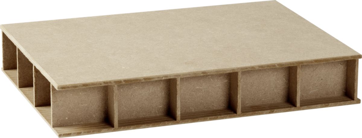 Die GreenPanel E-Z ist eine Leichtgewichtkonstruktionsplatte. Sie setzt sich aus einem Gitter aus sehr präzise ineinander verflochtenen HDF-Streifen zusammen, die auf HDF-Deckschichten verleimt sind. Diese Konstruktion verleiht der GreenPanel eine beispiellose Festigkeit. Die offenen Seiten dieser Platte können bis 60mm mit standardmäßigen Kantenanleimmaschinen bearbeitet werden. Gewicht: ca. 260 kg/m3 (38mm Dicke). Darüber hinaus weist die Platte eine sehr niedrige Formaldehydemission auf und ist daher CARB-2 und E1E05 zertifiziert.