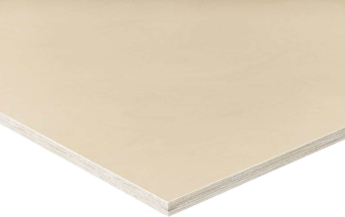 Diese beidseitig messerfurnierte Sperrholzplatte ist wahlweise mit einer opalweißen oder transparenten Oberflächenbeschichtung