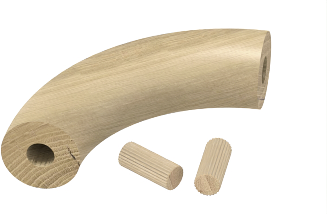 Handlaufbogen 90° flach Eiche, Durchmesser 45 mm, roh
