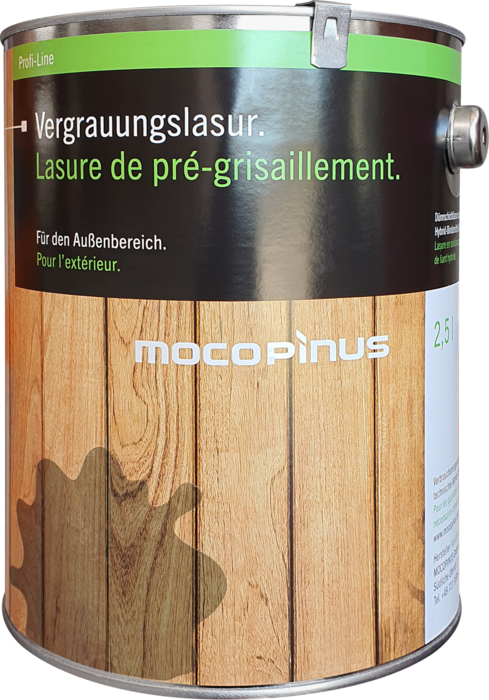 - Nimmt die natürliche Vergrauung des Holzes quasi vorweg, Farbton geht in Abhängigkeit von der Intensität der Bewitterung fließend in die natürliche Patina der Holzoberfläche über