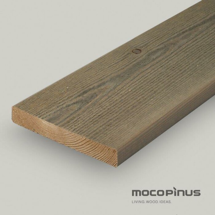 Spezielle Dünnschicht Oberflächenbehandlung für Vollholzprofile im Außenbereich, die von Anfang an einen Farbton nahe der natürlichen Vergrauung erhalten sollen.