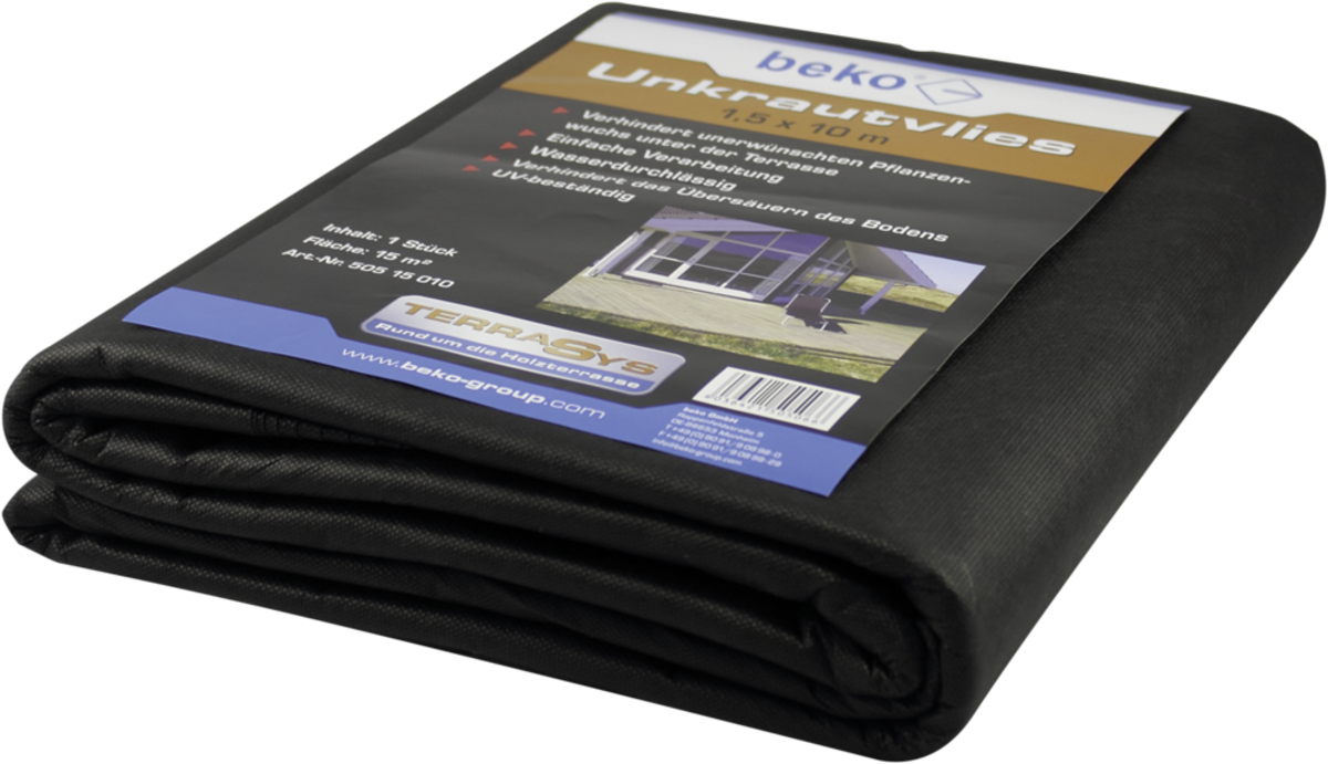 Das Wurzelvlies hemmt den Pflanzenwuchs unterhalb der Terrasse.