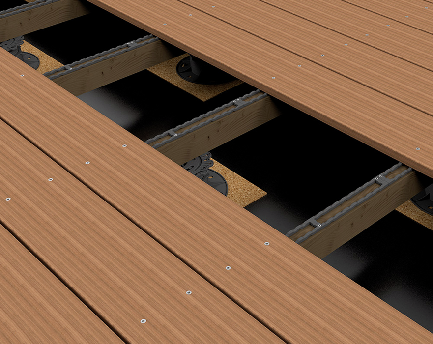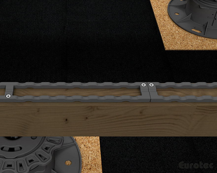 Für die sichtbare Befestigung von Terrassen kann die Dista-Leiste 2.0 verwendet werden. Sie wirkt als Abstandhalter und dient einem Bewegungsspielraum von 7 mm zwischen Diele und Unterkonstruktion. Gleichzeitig wird die Luftzirkulation unter der Terrasse durch die Distanzleiste gefördet, um Fäulnisbildung zu verhindern. Für die Montage werden normale Terrassenschrauben verwendet.