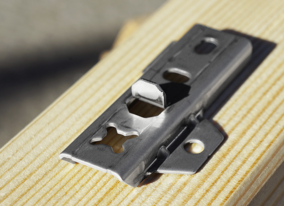 Unabhängig von der Dielengeometrie wird diese mit dem DILA Terrassenverbinder schnell realisiert. Die Bauhöhe des Verbinders schafft einen optimalen Abstand zwischen Belag und Unterkonstruktion, um die Bildung von Staunässe zu verhindern.