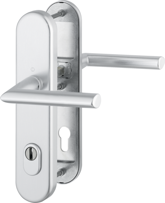 Hoppe Schutzbeschlag Stockholm Drücker/Drücker m.KZS, FS, RC2 - Alu Natur F1