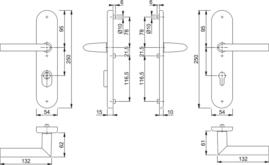 HOPPE-Aluminium-Feuerhemmende Schutz-Langschild-Türgriff-Garnitur mit Zylinder-Abdeckung für Außen-/Wohnungsabschluss-Türen: