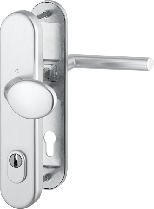Hoppe Schutzbeschlag Stockholm Knopf/Drücker m.KZS, FS, RC3 - Alu Natur F1