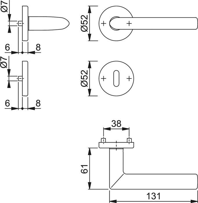 - Lagerung: Türgriffe lose, Rückholfedern rechts/links verwendbar, wartungsfreie Gleitlager