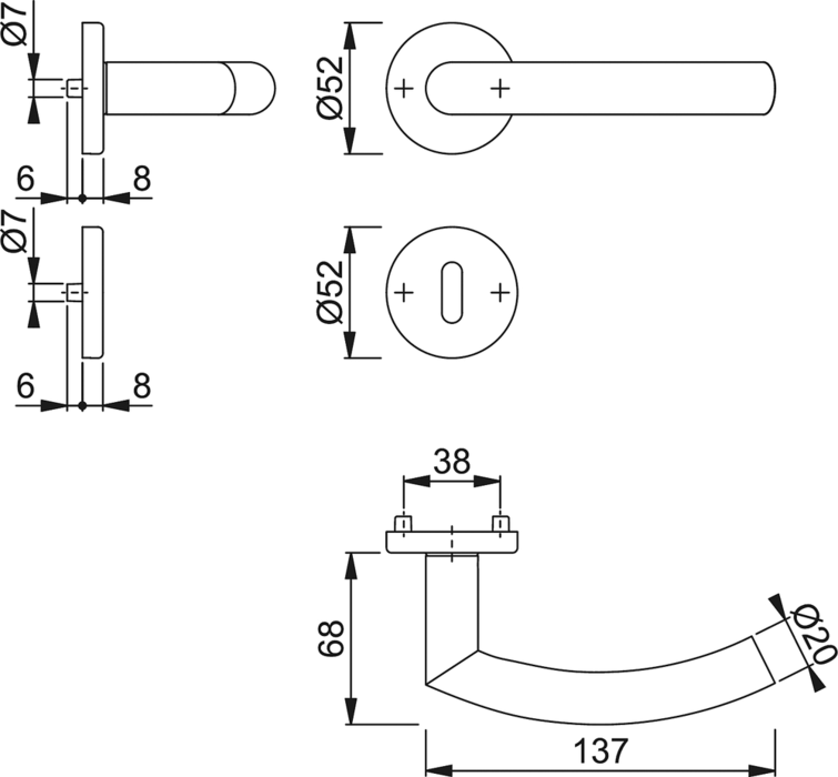 - Lagerung: Türgriffe lose, Rückholfedern rechts/links verwendbar, wartungsfreie Gleitlager