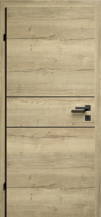 Eurowood CPL-Tür Eiche Wave quer Röhrenspan Vollbau, 2 Lisenen silber - links