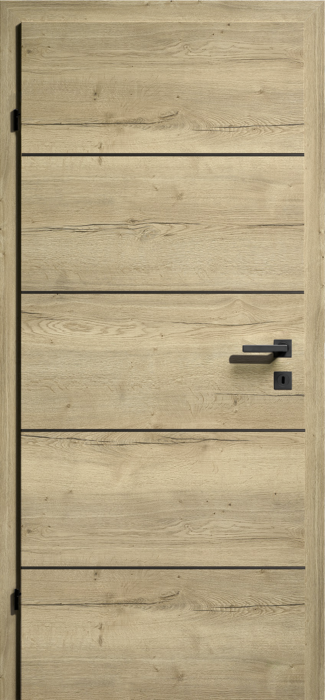 Eurowood CPL-Tür Eiche Wave quer Röhrenspan Vollbau, 4 Lisenen silber - links