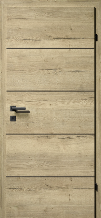 Eurowood CPL-Tür Eiche Wave quer Röhrenspan Vollbau, 4 Lisenen silber - rechts
