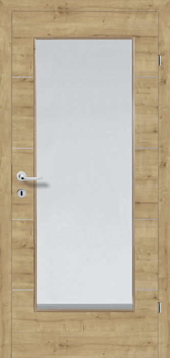 Eurowood CPL-Tür Eiche Zeitlos quer Röhrenspan mit Glaslichte (GA1), 4 Lisenen silber - rechts