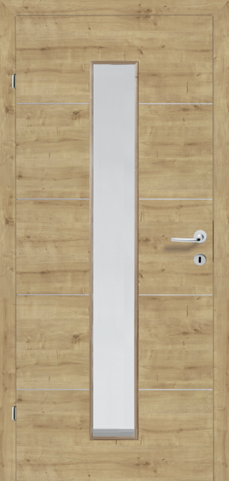Eurowood CPL-Tür Eiche Zeitlos quer Röhrenspan mit Glaslichte (GA3-M), 4 Lisenen silber - links
