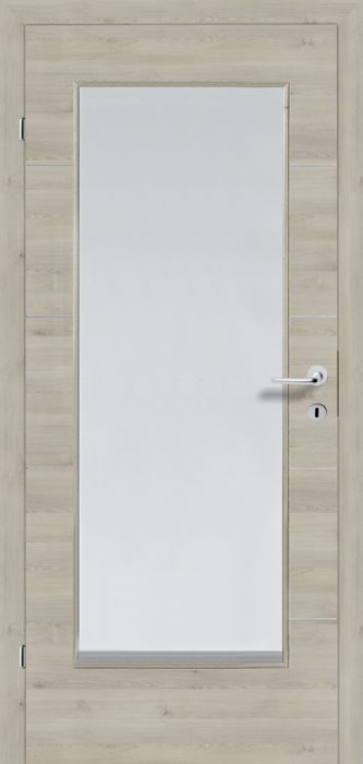 Eurowood CPL-Tür Pinie Fernweh quer Röhrenspan mit Glaslichte (GA1), 4 Lisenen silber - links