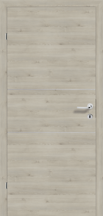 Eurowood CPL-Tür Pinie Fernweh quer Röhrenspan Vollbau, 2 Lisenen silber - links