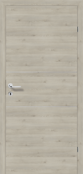 Eurowood CPL-Tür Pinie Fernweh quer Röhrenspan Vollbau, 2 Lisenen silber - rechts